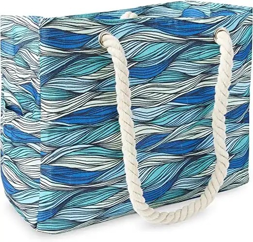 sac fourre-tout d'épaule en toile de coton lavable, sac de plage imperméable avec fermeture éclair |