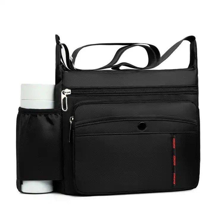 Sac croisé de bride de corps d'Oxford de croix de corps de noir imperméable unisexe de messager avec la poche de porte-bouteilles |